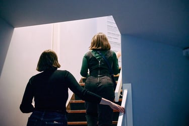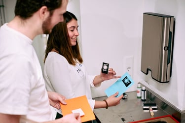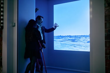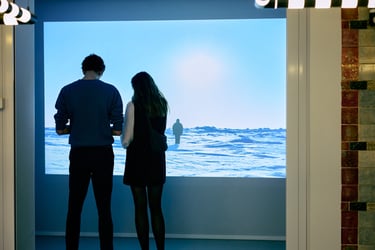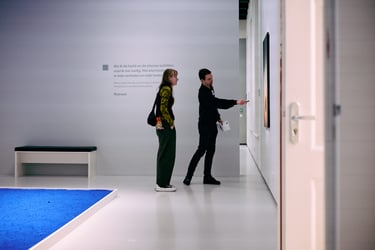 De dates gingen samen op ontdekkingstocht door het museum en Monopole. Zo liepen ze door de tentoonstelling Yves Klein en zijn kunstenaarsfamilie, waar het beroemde diepe blauw van Yves Klein veel gespreksstof opleverde. Even verderop, in Monopole, stapten de koppels midden in de installaties van Silence & the Presence of Everything, waar licht, wind, water en beweging de hoofdrol spelen. Iedereen plofte samen neer op de zitzakken om de installatie van Boris Acket te bewonderen.