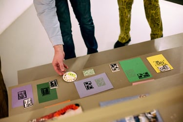 Voor wie liever meteen iets samen maakte, was er het atelier. Daar werden lp-hoezen ontworpen voor gedeelde muzieksmaken, koelkastmagneten gemaakt als souvenir van de date, en voor de durfals zelfs linosnedes gesneden en gedrukt. Samen creatief bezig zijn met iemand die je net hebt ontmoet is misschien een beetje spannend, maar het blijkt elke keer weer een geweldige ijsbreker.